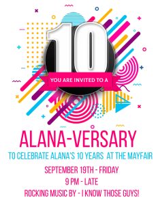 Come help celebrate Alana’s 10 years at The Mayfair!