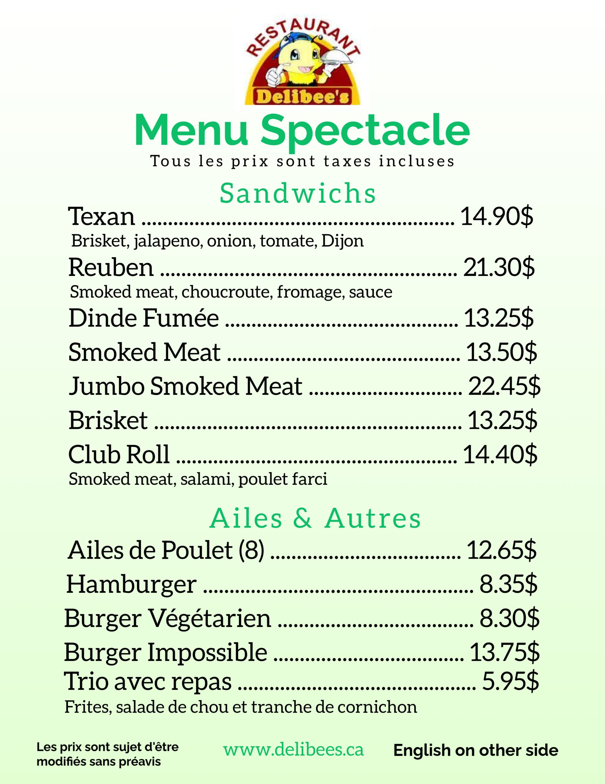 Nous proposons le menu complet de Delibee’s à la Taverne Mayfair. Du délicieux sandwich à la viande fumée aux côtes ou au steak, il y en a pour tous les goûts sur notre carte. Terminez votre repas par une tranche de nos exquis gâteaux au fromage !