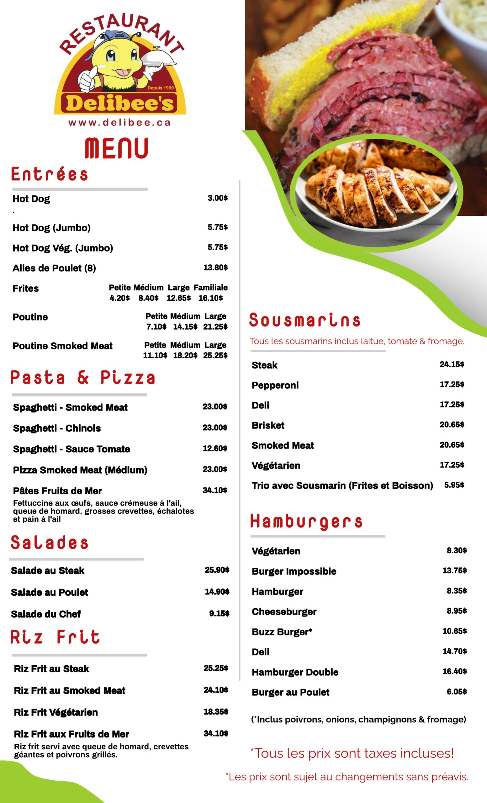 NOTE : Les prix peuvent être modifiés sans préavis.
